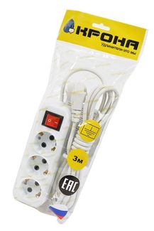 - Удлинитель сетевой Крона РС-3 зем+выкл (У16-001УХЛ4) 3м BL1 (ПВС 3х0,75) по выгодной цене 240 р. руб.;
