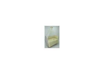 Комлпект из 7 предметов:борт 360см х45см (наполнитель холлкон)балдахин сетка-шитье 180см х 450см одеяло 105см х142см (наполнитель холлкон)пододеяльник на молнии 110смт х 145смподушка 40см х 60см (наполнитель холлкон)наволочка 40см х 60см простыня на резинке 100см х150см декоративный подматрасник. Ткань - 100 % хлопок, атлас-сатин.