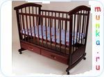 опускающаяся боковина 3 уровня основания матраца колеса качалка ящик открытый сьемное боковое ограждение (кроватка-диванчик для детей более старшего возраста) дерево: из западно-сибирской сосны размер спального места 120х60 см. цвета вишня и орех. None