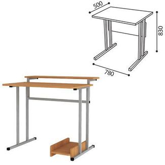 Стол-парта нерегулируемый с приставкой под системный блок и полкой для монитора компьютера. Металлокаркас окрашен износостойкой порошковой краской. Предназначен для использования в кабинете информатики школ и других учебных заведений. None