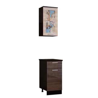 Кухонный модуль ВЕНЕЦИЯ имеет размер в ширину 400 мм. Предназначен для удлинения готовых гарнитуров. Для удобства в одном комплекте предлагается верхний и нижний ярус со столешницей. Размеры: 400 мм. Материал: Корпус ЛДСП, цвет венге. Фасад МДФ, цвет серый глянец, ясень бежевый глянец. Столешница 38мм, цвет венге. Ручка скоба металл матовый. Регулируемые опоры. Стекло витраж. В комплект включены: стол 400 с одним выдвижным ящиком, верхняя полка с витражным стеклом, столешница 38мм. None Есть доставка.