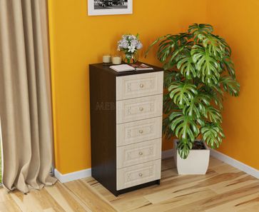 Размеры: 1020х472х434 мм. Материал: Корпус-ЛДСП, цвет венге магия. Фасад-МДФ, цвет выбеленный дуб. Компактный современный комод с пятью ящиками гармонично впишется в любую гостиную. Комод будет удобно сочетаться с гостиной "АЛИСА М" или "АЛИСА-1". Уникальные фрезеровки "cipolla" и стильные ручки типа "кнопка" подчеркивают изысканность комода и придают ему современный молодежный дизайн. None Есть доставка.