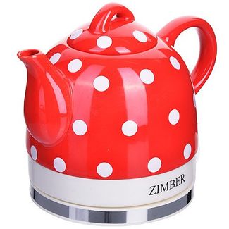 Электрочайник ZIMBER выполнен из высококачественной термостойкой керамики. Керамика абсолютно безопасна и является экологически чистым материалом, кроме того керамика выдерживает высокие температуры. Чайник оснащен скрытым нагревательным элементом из нержавеющей стали, имеет возможность вращения на основании на 360 градусов, а также имеет датчик автоматического отключения при закипании воды. Оформленный в виде заварочного чайника и украшенный рисунком, такой стильный электрический чайник сможет украсить любой кухонный интерьер! None Есть доставка.
