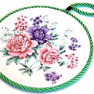 Круглая подставка под горячее выполнена из керамики с нанесением красочного цветочного рисунка. По краям подставка оформлена цветным канатным шнурком и петелькой, за которую вы сможете подвесить подставку на стену. Такая яркая подставка не только украсит ваш стол, но и сбережет его от высоких температур. Кроме того, благодаря своему оригинальному дизайну, она может просто служить украшением вашей кухни. None Есть доставка.