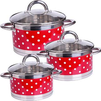 Набор кастрюль MAYER&BOCH выполнен из нержавеющей хромоникелевой стали 18/10 с матовой полировкой и цветным, оформленным декоративным изображением корпусом. Хромоникелевая сталь - это материал, из которого в течение многих десятилетий во всем мире производятся столовые приборы, кухонные инструменты и различные аксессуары. Этот материал обладает высокой стойкостью к коррозии и кислотам. Комбинация зеркальной и матовой полировки придает кастрюлям стильный и привлекательный внешний вид. Кастрюли имеют многослойное капсульное дно с алюминиевым основанием, которое быстро и равномерно накапливает тепло и также равномерно передает его пище. Такое дно позволяет готовить блюда с минимальным количеством воды и жира, сохраняя при этом вкусовые и питательные свойства продуктов. Применение технологии многослойного дна создает эффект удержания тепла - пища готовится и после отключения плиты благодаря термоаккумулирующим свойствам посуды. Диаметры изделий соответствуют общепринятым размерам конфорок бытовых плит. Кастрюли оснащены удобными металлическими ручками, которые не нагреваются в процессе приготовления пищи. Крышки изготовлены из жаростойкого стекла, оснащены ручками, отверстиями для выпуска пара и металлическим ободом. В комплекте 6 предметов: 3 кастрюли, 3 стеклянных крышки. Подходит для использования на газовых, электрических, галогенных, стеклокерамических, индукционных плитах. Подходит для мытья в посудомоечной машине. None Есть доставка.