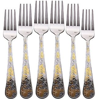 Набор из 6-ти столовых вилок MAYER&BOCH выполнен из высококачественной нержавеющей стали, которая проходит тщательный технический контроль. Качественная полировка обеспечивает высокую степень гигиеничности приборов. Приборы из нержавеющей стали отличаются высокими антикоррозионными свойствами и значительной устойчивостью к воздействию кислот и щелочей. Такая сталь не изменяет вкус и цвет пищи, не выделяет вредных веществ. Ручки вилок украшены элегантным золотым узором, выполненным по технологии плазменного напыления и обеспечивающим высокую износостойкость покрытия. Красивый и элегантный набор столовых вилок MAYER&BOCH станет настоящим украшением любого праздничного или обеденного стола, а эстетичность столовых приборов удовлетворит запросы даже самых требовательных и взыскательных покупателей. Подходит для мытья в посудомоечной машине. None Есть доставка.