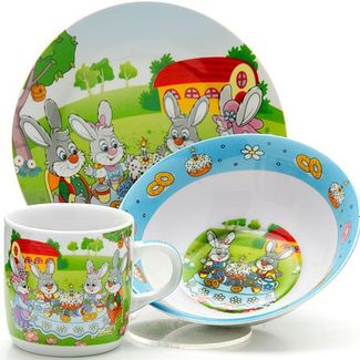 - 26096 Детский набор 3 предмета "Зайчики" LR (х12) (26096) в каталоге Другая кухонная посуда в Москве;