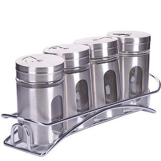 Набор банок изготовлен из нержавеющей стали и стекла. В таких банках ваши продукты будут долго храниться и будут в полной сохранности от грызунов и насекомых. Специальная подставка, делает хранение баночек еще более удобным. Баночки можно наполнять любыми, используемыми Вами специями. Плотное закрытие помогает сохранить свежесть и аромат содержимого, при этом не позволяет проникновение влаги. None Есть доставка.