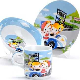 Предметы набора выполнены из высококачественной керамики и декорированы красочным рисунком. Изделия легкие и функциональные. Такой набор обязательно понравится вашему ребенку, потому что теперь у него будет своя собственная посуда с ярким и оригинальным рисунком. Набор посуды для детей включает в себя три предмета: суповую тарелку, обеденную тарелку и кружку. Набор упакован в красочную, подарочную упаковку. Подходит для мытья в посудомоечной машине. Для детей от 3-х лет. None Есть доставка.