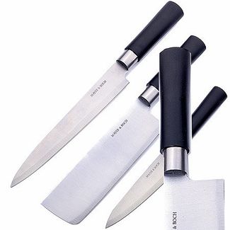 Набор ножей MAYER&BOCH состоит из 3-х универсальных ножей разного размера. Лезвия выполнены из высококачественной нержавеющей стали, имеют износостойкую режущую кромку, благодаря чему ножи дольше остаются острыми, а текстурные эргономичные рукоятки ножей, выполненные из черного каучука, обеспечивают безопасную работу и комфортное положение в руке. Это прекрасные ножи для ежедневной резки фруктов, овощей и мяса. Изделия имеют гладкую, легко очищаемую поверхность. Оригинальный дизайн набора и качество исполнения не оставят Вас равнодушными. Набор MAYER&BOCH станет великолепным подарком и отлично украсит интерьер Вашей кухни. Готовьте с удовольствием! None Есть доставка.