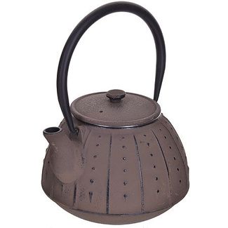 Заварочный чайник изготовлен из чугуна высокого качества. Внутренняя и внешняя поверхности чайника покрыты термостойким лаком, который защищает металл от ржавчины и препятствует возникновению металлического привкуса у напитка. Размещенный внутри чайника сетчатый фильтр гарантирует прозрачность и чистоту напитка от чайных листьев. За счет равномерного распределения тепла внутри чайника, напиток получается максимально вкусным и насыщенным. Так как чугунные чайники дольше других удерживают тепло, то и вода в нем будет оставаться горячей и пригодной для заваривания чая долгое время. Этот чайник украсит любую чайную церемонию, благодаря своему стильному восточному дизайну или просто станет прекрасным подарком на торжество. Мыть без применения абразивных моющих средств. Не подходит для мытья в посудомоечной машине. Не подходит для использования на открытом огне. None Есть доставка.
