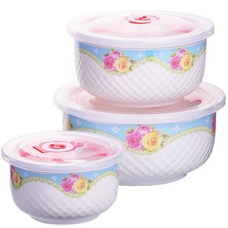 Набор салатниц с крышками LORAINE выполнен из керамики. Гибкая крышка сделана из пластика. Набор состоит из 3-х салатниц разного размера. Изделия декорированы орнаментом и рисунком, сочетая в себе классический дизайн с максимальной функциональностью. Удобная крышка из пищевого пластика позволит дольше храниться приготовленным блюдам. Такой набор послужит отличным подарком к любому празднику, а также добавит элегантности и уюта любому праздничному столу! Посуда обладает гладкой непористой поверхностью, не впитывает запахи, легко моется. Подходит для мытья в посудомоечной машине. None Есть доставка.