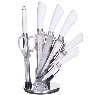 Набор MAYER&BOCH включает в себя 5 ножей разного размера, мусат (ножеточку), ножницы и подставку. Лезвия ножей выполнены из высококачественной нержавеющей стали, имеют гладкую и легко очищаемую поверхность, устойчивы к повреждениям и окислению. Набор ножей идеально подойдет для резки как мяса и рыбы, так и фруктов и овощей. Прочная эргономичная рукоятка каждого изделия, выполненная из нержавеющей стали, удобно ложится в ладонь, обеспечивая безопасную работу, комфортное положение в руке и надежный захват. Все предметы набора компактно размещаются на оригинальной прозрачной акриловой подставке-"веере". Набор MAYER&BOCH включает все необходимые ножи для ежедневного приготовления пищи, а его стильный современный дизайн украсит интерьер вашей кухни. Подходит для мытья в посудомоечной машине. None Есть доставка.