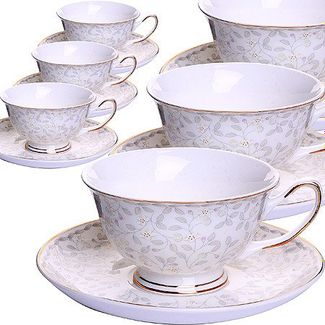 Чайный набор на 6 персон изготовлен из качественного костяного фарфора и декорирован нежным рисунком с изображением цветов. Элегантный чайный набор не только украсит сервировку стола, но и поднимет настроение и превратит процесс чаепития в одно удовольствие. Набор состоит из 12 предметов: 6-ти чашек и 6-ти блюдец, упакованных в прямоугольную подарочную коробку. Чашки имеют удобные, изящные ручки. Изделия легко и просто мыть. Чайный набор прекрасно подойдет в качестве подарка для родных и друзей на любой праздник! К красивому чайному набору подберите скатерть, столовые приборы и Вы создадите приятную атмосферу праздничного стола. None Есть доставка.