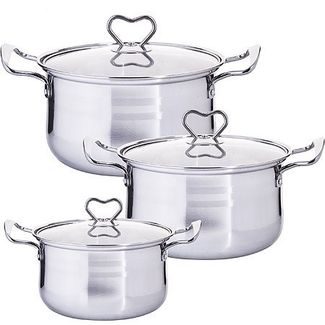 Набор кастрюль MAYER&BOCH выполненных из нержавеющей стали, состоит из кастрюль разного объема с крышками. Это материал, из которого в течение нескольких десятилетий во всем мире производятся столовые приборы, кухонные инструменты и различные аксессуары. Этот материал обладает высокой стойкостью к коррозии и кислотам. Прочность, долговечность и надежность этого материала, а также первоклассная обработка обеспечивают практически неограниченный запас прочности. Диаметры изделий соответствуют общепринятым размерам конфорок бытовых плит. Кастрюли оснащены удобными металлическими ручками, которые не нагреваются в процессе приготовления пищи. Крышки изготовлены из жаростойкого стекла, оснащены ручками, отверстиями для выпуска пара и металлическим ободом. Можно использовать на газовых, электрических, индукционных плитах. Можно мыть в посудомоечной машине. None Есть доставка.
