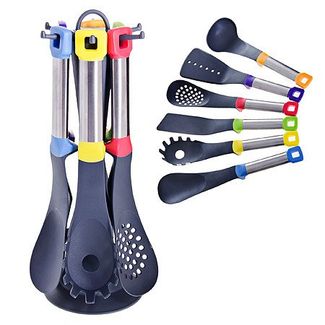 Кухонный набор MAYER&BOCH очень удобен в использовании, имеет стильную стойку-подставку, которая прекрасно впишется в любой кухонный интерьер. Приборы изготовлены из нейлона, нержавеющей стали и цветного полипропилена, отличаются высокой износоустойчивостью и надежностью, не окисляются со временем и не портят вкус продуктов, кроме того, они абсолютно безопасны для любых антипригарных покрытий. Кухонный набор придаст Вашей кухне элегантность, поднимет Ваше настроение и превратит приготовление еды в настоящее удовольствие! В набор входит: половник, ложка для спагетти, ложка с прорезями, сервировочная ложка, лопатка с прорезями, венчик. None Есть доставка.