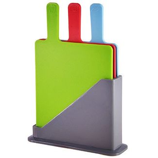 Набор разделочных досок MAYER&BOCH состоит из трех разноцветных досок, размещенных в оригинальной подставке, что делает набор не только многофункциональным, но и очень удобным для хранения на кухне. Цветные разделочные доски выполнены из прочного пищевого пластика и могут использоваться для нарезки сырого мяса и рыбы, овощей, фруктов, вареных и копченых продуктов, хлеба и т.д. Небольшой выступающий "ярлычок", имеющийся на каждой из досок, позволяет с легкостью извлекать их из подставки, а также служит удобной ручкой, за которую можно придерживать доску в процессе мытья. Каждый ярлычок отмечен рисунком продуктов, для которых предназначена доска: для рыбы, для мяса, для овощей и фруктов. Набор разделочных досок станет незаменимым и полезным аксессуаром на вашей кухне, который к тому же и стильно дополнит кухонный интерьер. Подходит для мытья в посудомоечной машине. None Есть доставка.