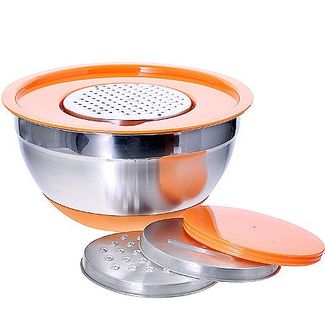 Универсальная миска с крышкой и 3-мя терками, объемом 2,5 литра, станет настоящей помощницей на кухне. Подходит для взбивания миксером и венчиком через отверстие в крышке, а также для шинковки продуктов прямо в миску. Материал миски и терок нержавеющая сталь, крышка выполнена из пластика.Терки: мелкая, крупная, шинковка. На дне миски силикон, что обеспечивает устойчивость миски на поверхности. При взбивании миксером крышка не даст брызгам разлететься во все стороны. None Есть доставка.