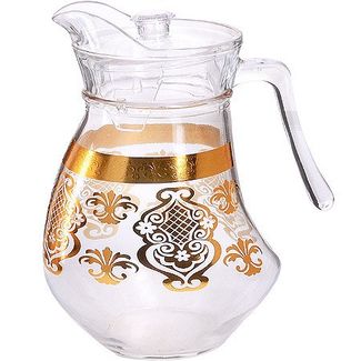 Кувшин LORAINE, выполнен из высококачественного стекла и пластика. Удобная форма носика и крышка позволяет защитить ваш напиток от попадания излишних запахов в ваш напиток. Подходит для: соков,морсов,компотов и любых интересных для Вас напитков. Кувшин так же имеет удобную ручку,которая упрощает использование его. Поверхность гладкая с золотистым рисунком . None Есть доставка.