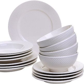 Набор посуды LORAINE выполнен из фарфора. Набор предназначен для сервировки обеденного стола. Включает в себя 16 предметов и рассчитан на четыре персоны: обеденные тарелки 4 шт, суповые тарелки 4 шт, десертные тарелки 4 шт, салатники 4 шт. Форма изделий круглая. Классический дизайн сочетается в нем с максимальной функциональностью. Такой набор послужит отличным подарком к любому празднику, а также добавит элегантности и уюта любому праздничному столу! Посуда обладает гладкой непористой поверхностью, не впитывает запахи, устойчива к перепадам температуры и легко моется. Можно использовать данную посуду в микроволной печи. Подходит для мытья в посудомоечной машине. None Есть доставка.