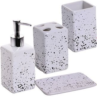 В набор аксессуаров MAYER&BOCH для ванной комнаты входят: стакан 270 мл. подставка для зубных щеток, мыльница и диспенсер для жидкого мыла 280 мл.с дозатором. Набор выполнен из керамики высокого качества, поэтому за ним очень легко ухаживать, для этого достаточно просто периодически промывать изделия водой. Все элементы выдержаны в одном стиле, что позволяет создать в ванной комнате стильный и оригинальный функционально-декоративный ансамбль. Такой набор аксессуаров придаст вашей ванной комнате элегантность и современность. None Есть доставка.