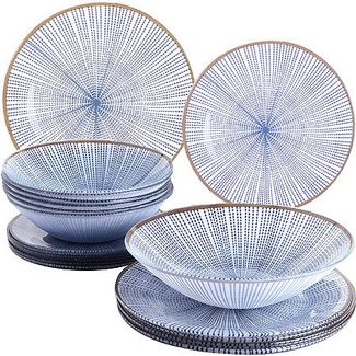 Набор посуды LORAINE выполнен из стекла и декорирован необычным рисунком. Данный набор предназначен для сервировки обеденного стола на 6 персон. Форма изделий круглая. Классический дизайн сочетается в нем с максимальной функциональностью. Такой набор послужит отличным подарком к любому празднику, а также добавит элегантности и уюта любому праздничному столу! Посуда обладает гладкой непористой поверхностью, не впитывает запахи, устойчива к перепадам температуры и легко моется. В набор входит 6 десертных тарелок, 6 глубоких тарелок, 6 больших тарелок и 1 большая салатница. Подходит для мытья в посудомоечной машине. None Есть доставка.