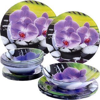 Набор посуды LORAINE выполнен из стекла и декорирован красочными орхидеями. Данный набор предназначен для сервировки обеденного стола на 6 персон. Форма изделий круглая. Классический дизайн сочетается в нем с максимальной функциональностью. Такой набор послужит отличным подарком к любому празднику, а также добавит элегантности и уюта любому праздничному столу! Посуда обладает гладкой непористой поверхностью, не впитывает запахи, устойчива к перепадам температуры и легко моется. В набор входит 6 десертных тарелок, 6 глубоких тарелок, 6 больших тарелок и 1 большая салатница. Подходит для мытья в посудомоечной машине. None Есть доставка.