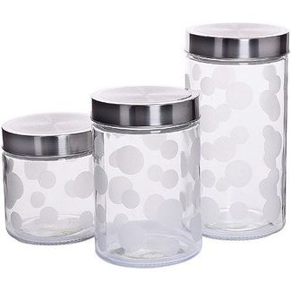Набор MAYER&BOCH из 3-х банок для сыпучих продуктов выполнен из высококачественного стекла с декоративным рисунком. Банки предназначены для хранения различных сыпучих продуктов: сахара, кофе, муки, соли, круп, макаронных изделий и т.п. Крышки плотно завинчивается и препятствует проникновению влаги и посторонних запахов. Необычная и оригинально оформленная банка украсит любую кухню. Изделие не впитывает запахи и легко моется. None Есть доставка.