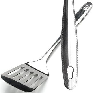 Лопатка изготовлена из высококачественной нержавеющей стали. Лопатка предназначена для переворачивания и перемешивания горячих блюд в процессе приготовления. За счет своих компактных размеров изделие не займет много места на Вашей кухне, кроме того на рукоятке имеется отверстие для подвешивания. Лопатка станет достойным дополнением к Вашему кухонному инвентарю. Подходит для мытья в посудомоечной машине. None Есть доставка.
