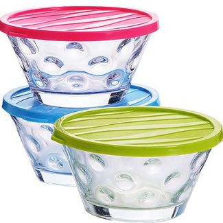 Набор салатниц выполнен из качественного прочного стекла и включает в себя 3 круглые салатницы одного диаметра. Цветные пластиковые крышки плотно закрываются, за счет чего приготовленные блюда будут храниться дольше. Такой набор пригодится любой хозяйке, значительно облегчив ее работу, а также добавит уюта любому праздничному столу! Посуда обладает гладкой непористой поверхностью, не впитывает запахи, устойчива к перепадам температуры. Подходит для использования в микроволновой печи без крышек. Подходит для мытья в посудомоечной машине None Есть доставка.