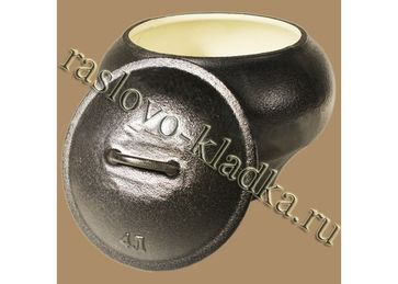 - Чугунок для русской печи емкостью 4,0 л с эмалированной крышкой по выгодной цене 6 000 р. руб.;