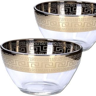 Набор из 2-х салатниц выполнен из качественного прочного стекла. Декорирован золотистым орнаментом. Изящные салатницы станут прекрасным дополнением к набору посуды, отлично подойдут для сервировки праздничного стола, а также будут прекрасным подарком. Посуда обладает непористой поверхностью и не впитывает запахи. Легко и быстро моется. Подходит для мытья в посудомоечной машине. None Есть доставка.