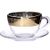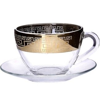Чайный набор выполнен из стекла. Чашка декорирована золотистым орнаментом. Элегантный дизайн и совершенные формы изделий привлекут к себе внимание и украсят интерьер вашей кухни. Чайный набор идеально подойдет для сервировки стола и станет отличным подарком к любому празднику. Чайный набор состоит из 2-х предметов: 1 чашка объёмом 200 мл. и 1 блюдце D 13 см. None Есть доставка.