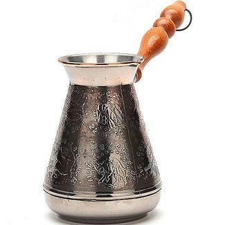 Турка изготовлена из высококачественной меди марки М1М, внешняя поверхность покрыта декоративным черным никелем, внутренняя поверхность – слоем пищевого олова, являющимся безопасным для здоровья. Турка предназначена для приготовления натурального кофе. Медь обладает равномерной теплопроводностью, что позволяет приготовить кофе, отличающийся изысканным ароматом. Узкое горлышко также является положительной характеристикой изделия. Длинная ручка, выполненная из дерева, обеспечивает защиту от ожогов. Подходит для использования на всех типах плит, кроме индукционных. Не подходит для использования в посудомоечной машине. Не допускается нагрев изделия без воды, а также чистка с применением металлических щеток и абразивных моющих средств. None Есть доставка.