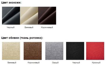 Цвет обивки (ткань рогожка): Бежевый, Коричневый, Серый, Черный, Красный
