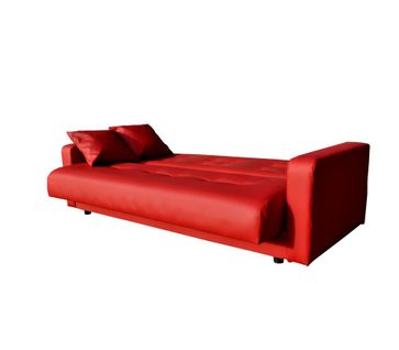 Каркас: массив дерева (сосна), ДСП, фанера Механизм: книжка Ткань: экокожа Большой ящик для хранения белья Подушки - в комплект не входят Наполнитель: ППУ (износостойкий, долговечный поролон) Цвет: красный, бежевый Минимальная сумма заказа 1000 рублей. Страна производства: Россия Возможен самовывоз.