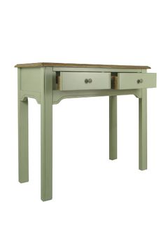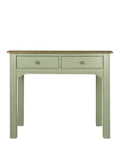 Элегантная консоль из массива березы сделает интерьер вашего дома по-настоящему стильным и уютным. С основным оливковым оттенком удачно гармонирует коричневая столешница из ясеня. Надежные устойчивые ножки, два выдвижных ящика с фурнитурой под бронзу – данная консоль очень практична и функциональна. На ее просторную столешницу вы смело сможете поставить любые дорогие вашему сердцу вещицы: комнатный цветок в красивом кашпо, изящную вазу, милые статуэтки – всё будет смотреться просто великолепно. Характеристики: Цвет Оливковый, бежевый Глубина, см 38 Высота, см 76 Ширина, см 90 Материал Массив березы Вес 20 кг Стиль Прованс Столешница - ясень Цвет столешницы Орех Дизайн Франция Количество ящиков 2 Коллекция Olivia Минимальная сумма заказа 1000 рублей. Возможен самовывоз.