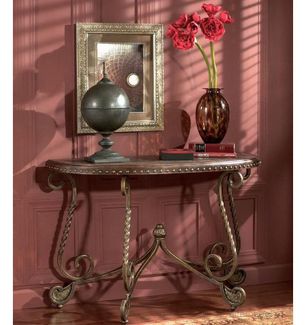 Удивительно красивый журнальный стол в восточном стиле. Основное украшение данной модели – кованное ажурное основание. Изогнутые ножки стола витиевато переплетаются, создавая завораживающий узор. Столешница из МДФ в тон металлическому подстолью и ножкам.