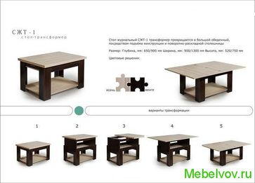 - Стол журнальный-трансформер СЖТ-1 по выгодной цене 6 100 р. руб.;