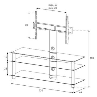 Надежная стойка под ТВ с жестким креплением станет элегантным и незаменимым элементом любого интерьера. Изготовлена из закаленного стекла и высококачественного алюминия. Поворотное крепление подходит для всех видов плоских телевизоров (LCD, LED и плазма). Есть кабель-канал для скрытия проводов и скрытые колесики для перемещения стойки. Стойка предназначена для телевизоров с диагональю 42-65 дюймов. Крепление поддерживает форматы 20x20, 30x30, 40x40. Характеристики: Габариты (ШxВxГ, мм): 1300х1330х440 Закаленное стекло: да Цвет стекла: черный Цвет ножек: черный MAX нагрузка (кг): 40 Диагональ ТВ (дюймы): 42-65 Кабель-канал: да Поворот кронштейна: да Скрытые колесики: да Минимальная сумма заказа 1000 рублей. Возможен самовывоз.