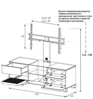 Надежная стойка под большие телевизоры с универсальным поворотным креплением из закаленного стекла с закругленными углами и полированной кромкой. Поворотное крепление подходит для всех видов плоских телевизоров (LCD, LED и плазма) и имеет возможность регулировки высоты. В задней ножке расположен кабель-канал для маскировки проводов и кабеле. Оснащена скрытой роликовой системой для плавного перемещения ТВ стойки вместе с телевизором и другой аппаратурой. Стойка предназначена для телевизоров с диагональю 32-75 дюймов (весом до 50 кг). Крепление поддерживает форматы 20x20, 30x30, 40x40. Возможно оснащение увеличенным крепление (80x45). Выдвижной ящик оснащен системой мягкого и бесшумного закрытия. Характеристики: Габариты (ШxВxГ, мм): 1400х1300х440 Закаленное стекло: да Цвет стекла: прозрачный Цвет ножек: стальной Нагр. на кронштейн (кг): 50 Нагр. верхняя полка (кг): 40 Диагональ ТВ (дюймы): 32-75 Кабель-канал: да Поворот кронштейна: да Скрытые колесики: да Цвет ящиков: apple Минимальная сумма заказа 1000 рублей. Возможен самовывоз.
