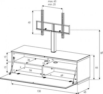 ТВ стойка оснащена универсальным поворотным кронштейном с возможностью регулировки телевизора по высоте.
