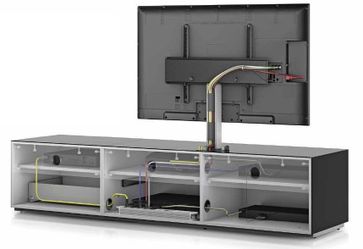 Закрытая стойка под телевизор премиум класса для больших телевизоров. Верхняя полка и дверка сделаны из закаленного стекла. Дверь открывается нажатием. Эффективный кабель-канал для маскировки всех кабелей и шнуров. Скрытые колесики, позволяющие плавно двигать тумбу с техникой, в случае необходимости. Например, протереть пыль за тумбой. В комплекте стойки инфракрасный ретранслятор сигнала (для пультов), то есть оборудование (ДВД плеер, спутниковый ресивер и пр.) внутри стойки будет работать с пульта при закрытой дверке. ТВ стойка оснащена универсальным поворотным кронштейном с возможностью регулировки телевизора по высоте. Характеристики: Габариты (ШxВxГ, мм): 1650x870x450 Закаленное стекло: да Цвет стекла: белый MAX нагрузка (кг): 100 Нагр. на кронштейн (кг): 50 Диагональ ТВ (дюймы): 37-75 Кабель-канал: есть Поворот кронштейна: есть Скрытые колесики: есть Минимальная сумма заказа 1000 рублей. Возможен самовывоз.
