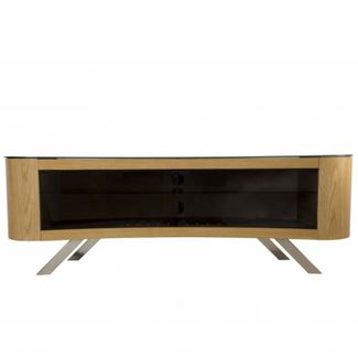 ТВ тумба из натурального шпона от всемирно известной английской фабрики AVF для больших телевизоров до 75 дюймов (до 60 кг). Используется закаленное стекло. Сзади удобный кабель-канал. Дверки пропускают ИК-сигнал, поэтому пульты будут работать с закрытыми дверками. Подходит как для размещения в углу, так и вдоль стенки. Идеальный вариант для изогнутых телевизоров. У данной модели три варианта ножек (все варианты идут в комплекте) разной высоты (50см/40см/30см).