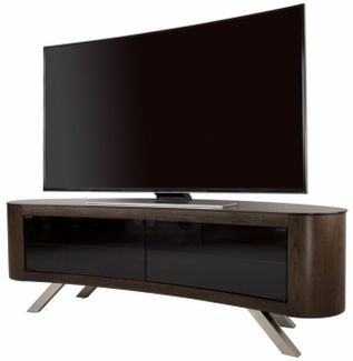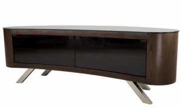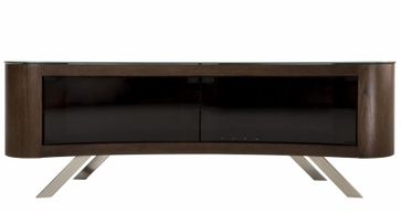 ТВ тумба из натурального шпона от всемирно известной английской фабрики AVF для больших телевизоров до 75 дюймов (до 60 кг). Используется закаленное стекло. Сзади удобный кабель-канал. Дверки пропускают ИК-сигнал, поэтому пульты будут работать с закрытыми дверками. Подходит как для размещения в углу, так и вдоль стенки. Идеальный вариант для изогнутых телевизоров. У данной модели три варианта ножек (все варианты идут в комплекте) разной высоты (50см/40см/30см).