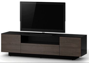 Стильная тумба под телевизор со столешницей из закаленного стекла и выдвижными ящиками. Предназначена для больших телевизоров весом до 80 кг.