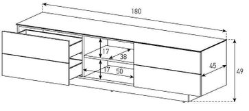 Характеристики: Габариты (ШxВxГ, мм): 1800х490х450 Закаленное стекло: да Цвет стекла: черный MAX нагрузка (кг): 80 Диагональ ТВ (дюймы): 42-85 Цвет ящиков: черный Минимальная сумма заказа 1000 рублей. Возможен самовывоз.