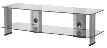Тумба под ТВ Sonorous PL PL 3150C-SLV выполнена из металла и закаленного стекла с закругленными углами и полированной кромкой. Оснащена скрытой роликовой системой для плавного перемещения ТВ стойки вместе с телевизором и другой аппаратурой. Описание: подходит для большинства телевизоров с диагональю от 42 до 75 дюймов современный дизайн 3 полки из закаленного стекла система укладки проводов Допустимые нагрузки (кг): max: 60 верхняя полка: 50 нижняя полка: 25 Размеры (ДхВхГ), мм: 1400 х 420 х 380 Цвета: Стойки: серебристый Стекло: прозрачный Минимальная сумма заказа 1000 рублей. Возможен самовывоз.