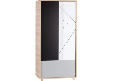 • Шкаф коллекции Evolve очень практичен и состоит из 2-х частей. Верхняя часть с полками и местом для одежды; нижняя - с вместительным выдвижным ящиком • Левая дверка шкафа покрыта специальным покрытием и напоминает школьную доску, что позволяет рисовать мелом, не боясь что испортится поверхность • Рекомендуем на правой дверце разместить магнитную доску с магнитами; очень красиво и эстетично будут смотреться творения вашего ребенка или просто деловые бумаги, которые нужно не забыть дома • Внутри левой части шкаф оснащен длинной железной штангой для одежды, а на правой стороне - полки, регулируемые по высоте • Двери с обеих сторон шкафа открываются при помощи легкого толчка • В нижней части шкафа вместительный ящик