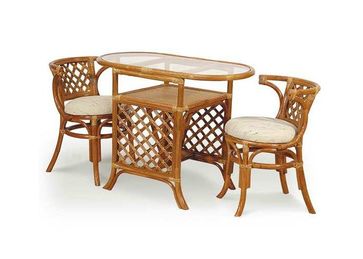 Необычайно элегантный и удобный комплект мебели из ротанга: стол со стеклянной столешницей и два мягких стула с ажурными спинками цвет: натуральный, олива, коньяк, браун стол: высота-76, ширина-100, глубина-51 стул: высота-69, ширина-51, глубина-49 Страна-производитель: Индонезия None Есть доставка.
